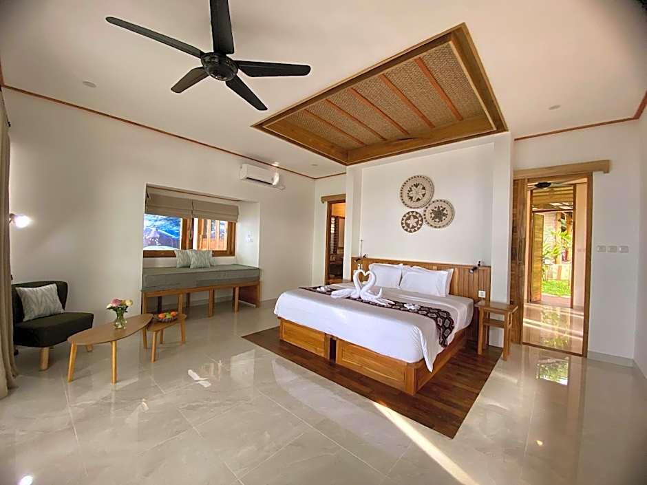 The spacious twin/double room provides air conditioning, a seating area, a terrace with sea views as well as a private bathroom featuring a shower.